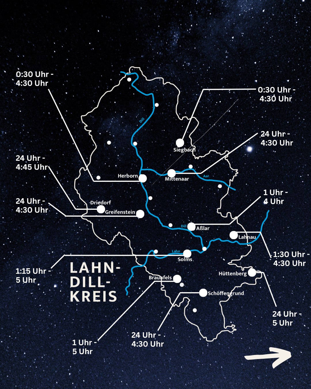 Bei uns im Lahn-Dill-Kreis gibt es einige Kommunen, die nachts die Straßenbeleuchtung abschalten. Wir zeigen Dir gute Orte zum Sterne gucken. Hier geht nachts das Licht aus.