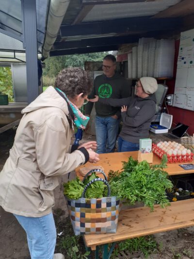 Laura Heun und ihr Mann erklärten das Konzept der Biogärtnerei. Sie bauen über 80 Gemüsesorten an, die sie in Abo-Kisten verkaufen. Ihr Gemüse kann man von März – Oktober über ein wöchentliches Abo  beziehen. Donnerstags ist Abholtag.