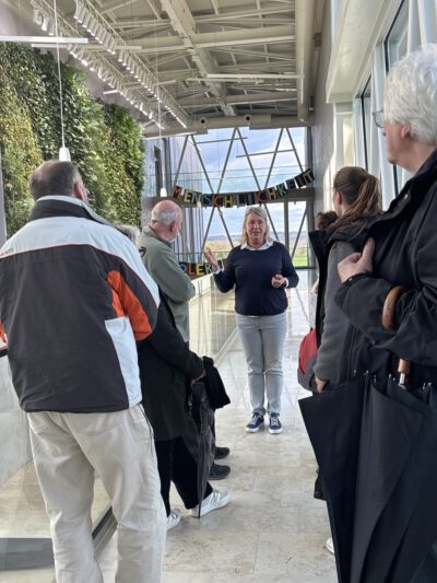 Die Schulleiterin Evelyn Benner hat die Fraktion im 2023 bezogenen Neubau willkommen geheißen. Es gab eine Führung und einen regen Austausch. Frau Benner stellt das pädagogische Konzept der Schule vor, führte durch den Neubau, eklärte die Bauweise und Architektur.
